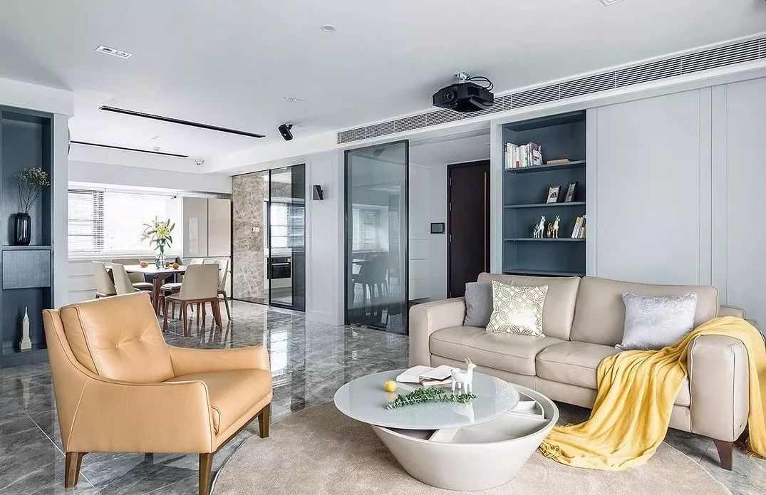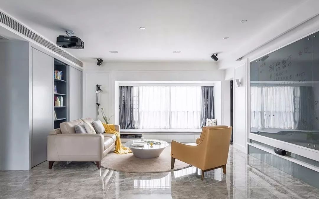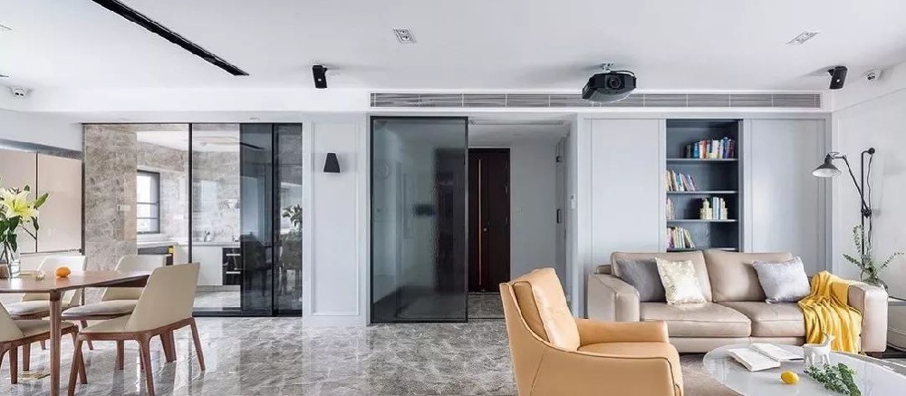 ▲ 沙发后方,大书柜+推拉门,让家居空间更加自在活跃