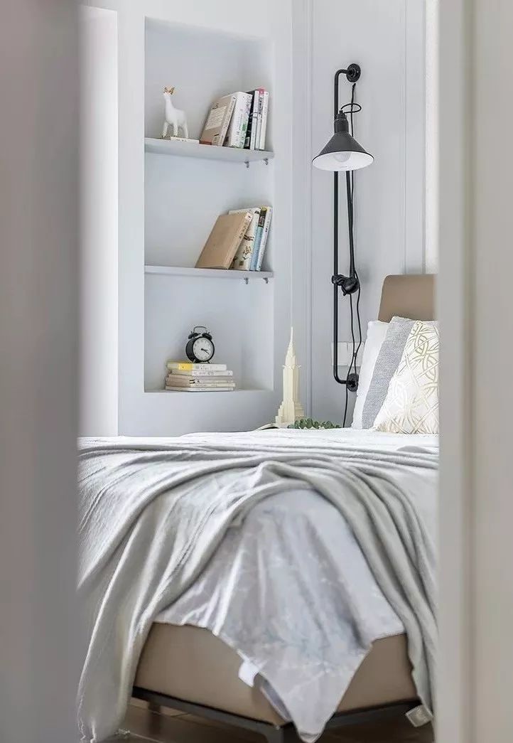 ▲ 主卧,安静的灰调营造出朴实悠闲的氛围,壁龛的设计,丰富立面的同时增加置物功能