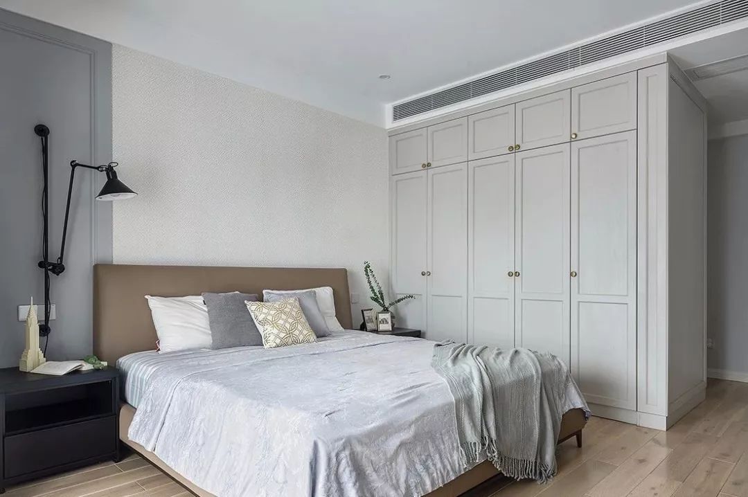 ▲ 双面开的大衣柜,解决床正对主卫门的弊端,同时增加储物空间