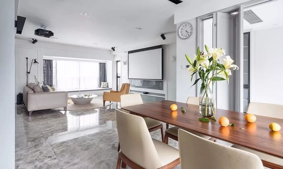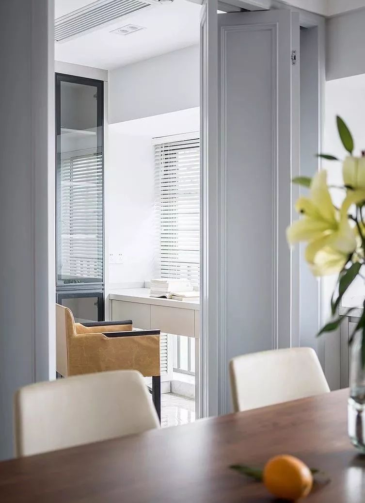 ▲ 餐厅的另一侧,设计折叠门,让书房与主空间互动性增强,凸显空间层次感